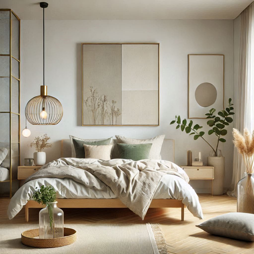 Agrega lámparas minimalistas y de luz cálida para crear un ambiente acogedor y moderno. - Arte y decoración limitada:
